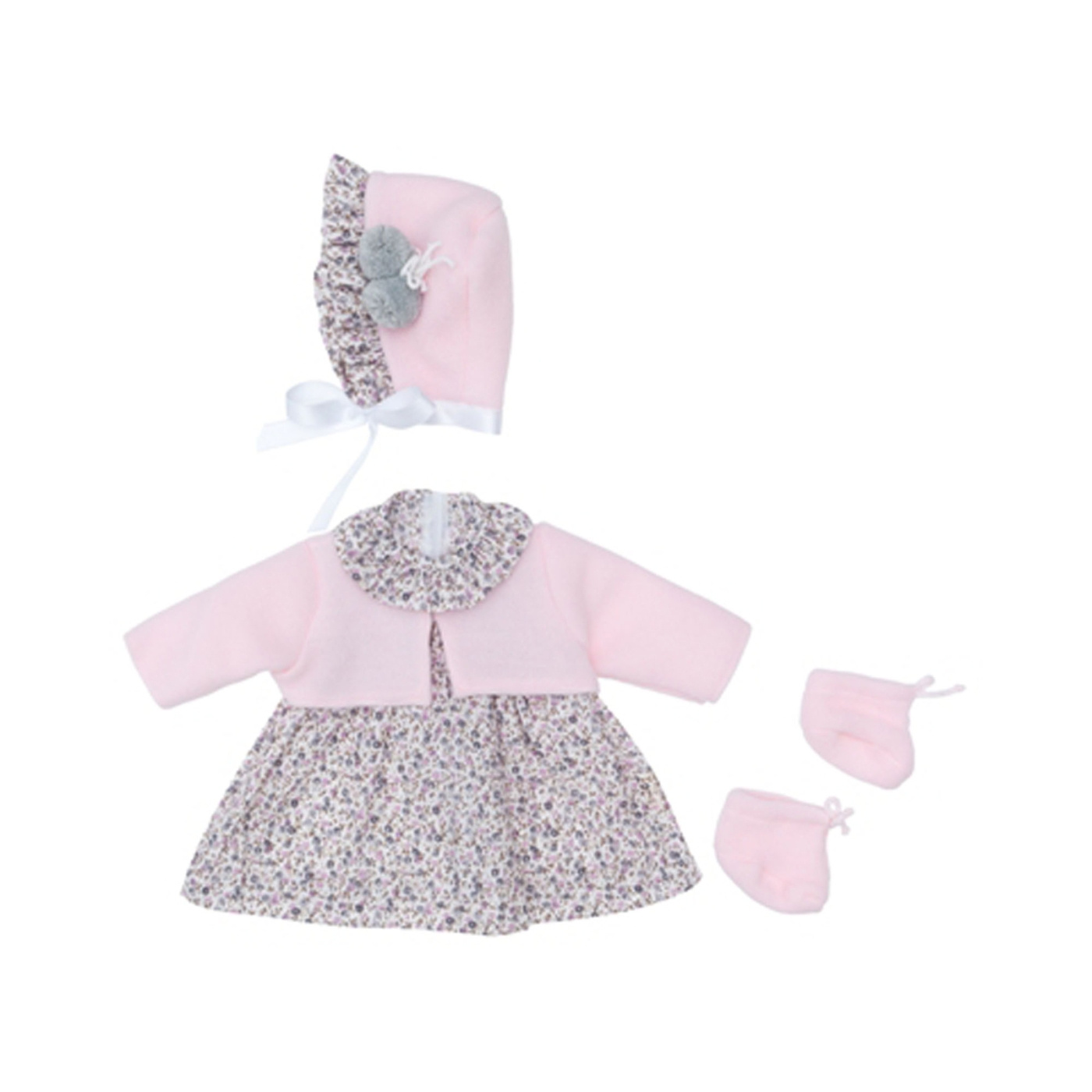 Pue 46cm tyttö nukkeesi tyylikkäästi Leonora by ASI. Tämä viehättävä setti sisältää kukkamekon, lyhyen vaaleanpunaisen neulepuseron, sukat ja yhteensopivan pipon. Täydellinen mielikuvitusleikkeihin ja nuken vaatekaapin täydentämiseen. Korkealaatuiset materiaalit takaavat kestävyyden ja täydellisen istuvuuden.