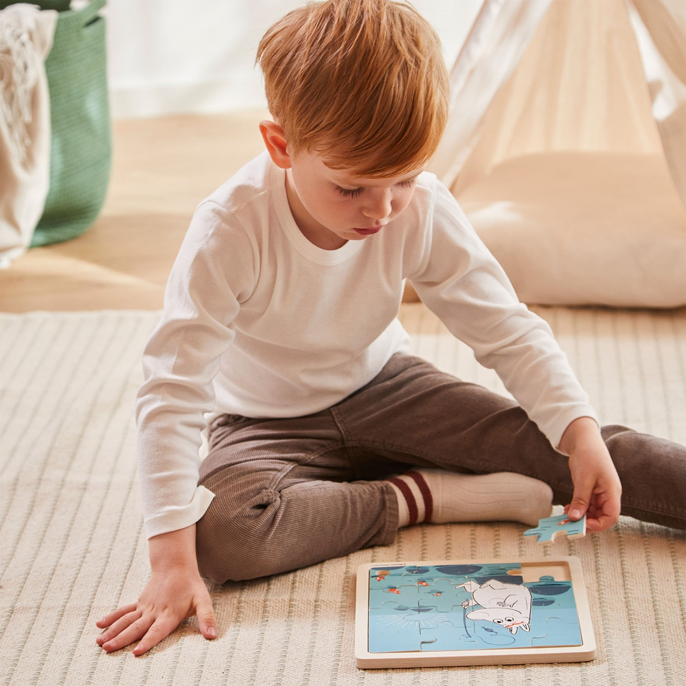 Tämä 16-osainen puupalapeli on kodikas ja kestävä muotoilu, ja siinä on söpö muumimotiivi, jossa Muumipeikko hyppii sängyssään. Se tarjoaa monta tuntia kiehtovaa leikkiä ja kehitystä pienille lapsille. Palapeliä kootessaan lapset kehittävät visuaalista hahmottamista ja hienomotorisia taitojaan, mikä tekee siitä erinomaisen kehitystyökalun. Tämä palapeli sopii 2-vuotiaille ja sitä vanhemmille lapsille ja on hieno tapa yhdistää hauskanpito ja oppiminen.