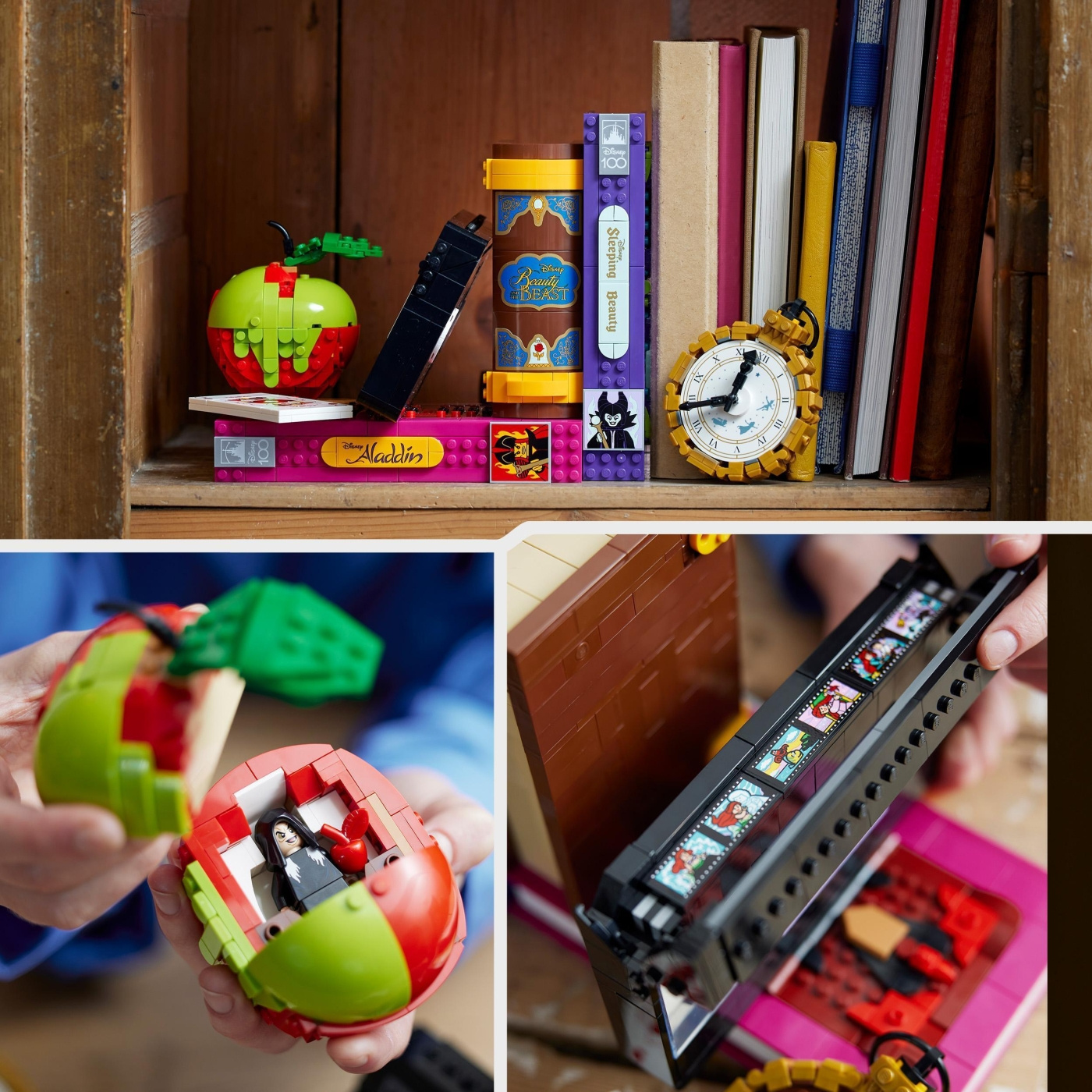 - Build and display – This Disney-memorabilia-filled set has 1,540 pieces that create several distinct items, including 2 VHS ‘cases,’ a video ‘tape’, poison apple, playing card, book and a pocket watch