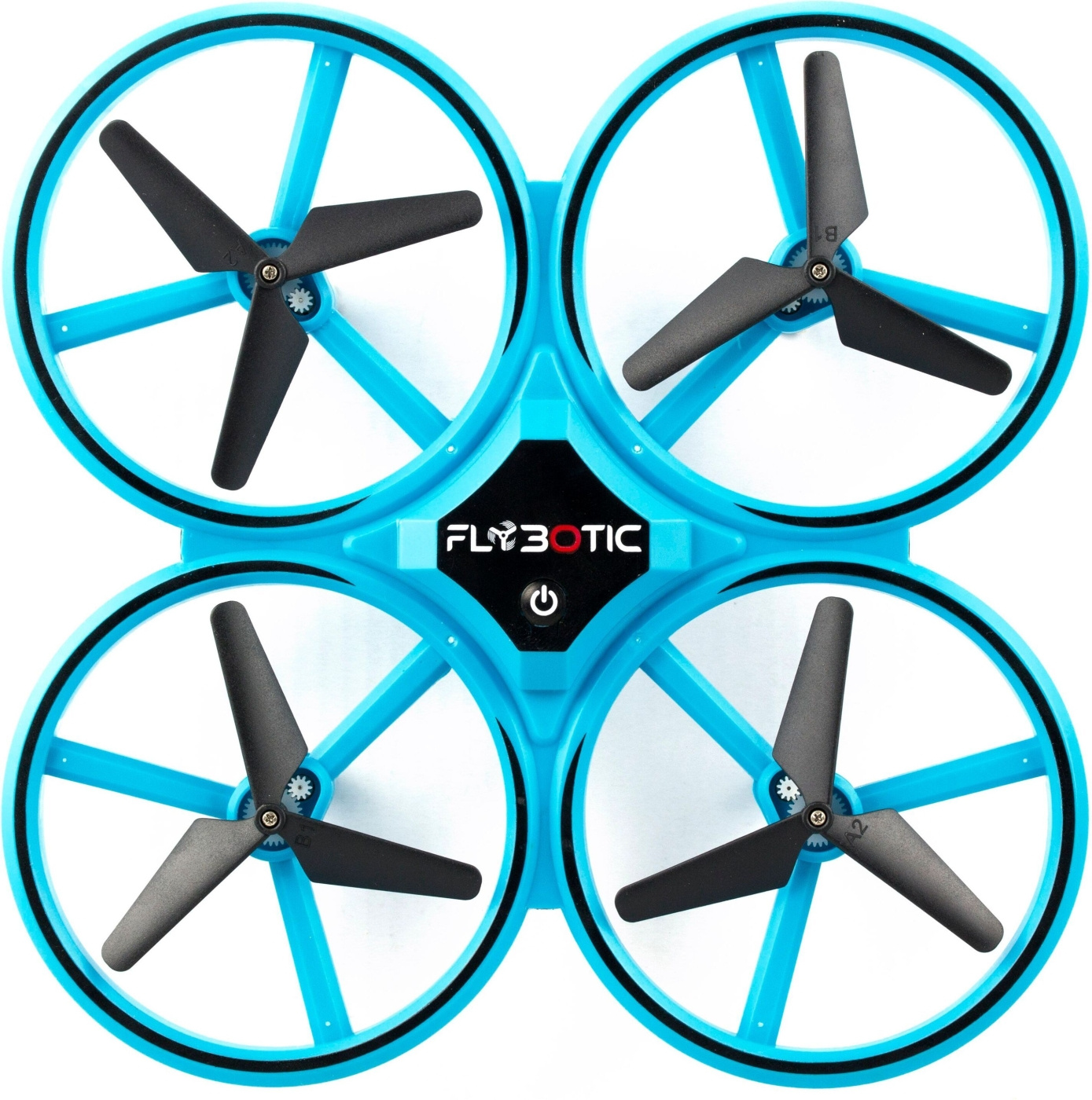 Upea Flybotic Flashing -kauko-ohjattava drone näyttävillä ledvaloilla, jonka ansiosta voit ohjata sitä myös hämärässä säässä! Mukana kaksi eri ohjainta; perusohjain tai käteen kiinnitettävä ohjain. Pehmeät suojarenkaat ja 360 asteen kääntyvyys. Helppokäyttöisellä ohjaimella voit ohjata dronea ylös, ala, oikealle, vasemmalle ja taaksepäin. Voit myös laukaiseta 360° Flip -tempun helposti yhdellä painikkeen painalluksella. Tarkka nopeuden säätö, voidaan käyttää niin sisällä kuin ulkonakin.