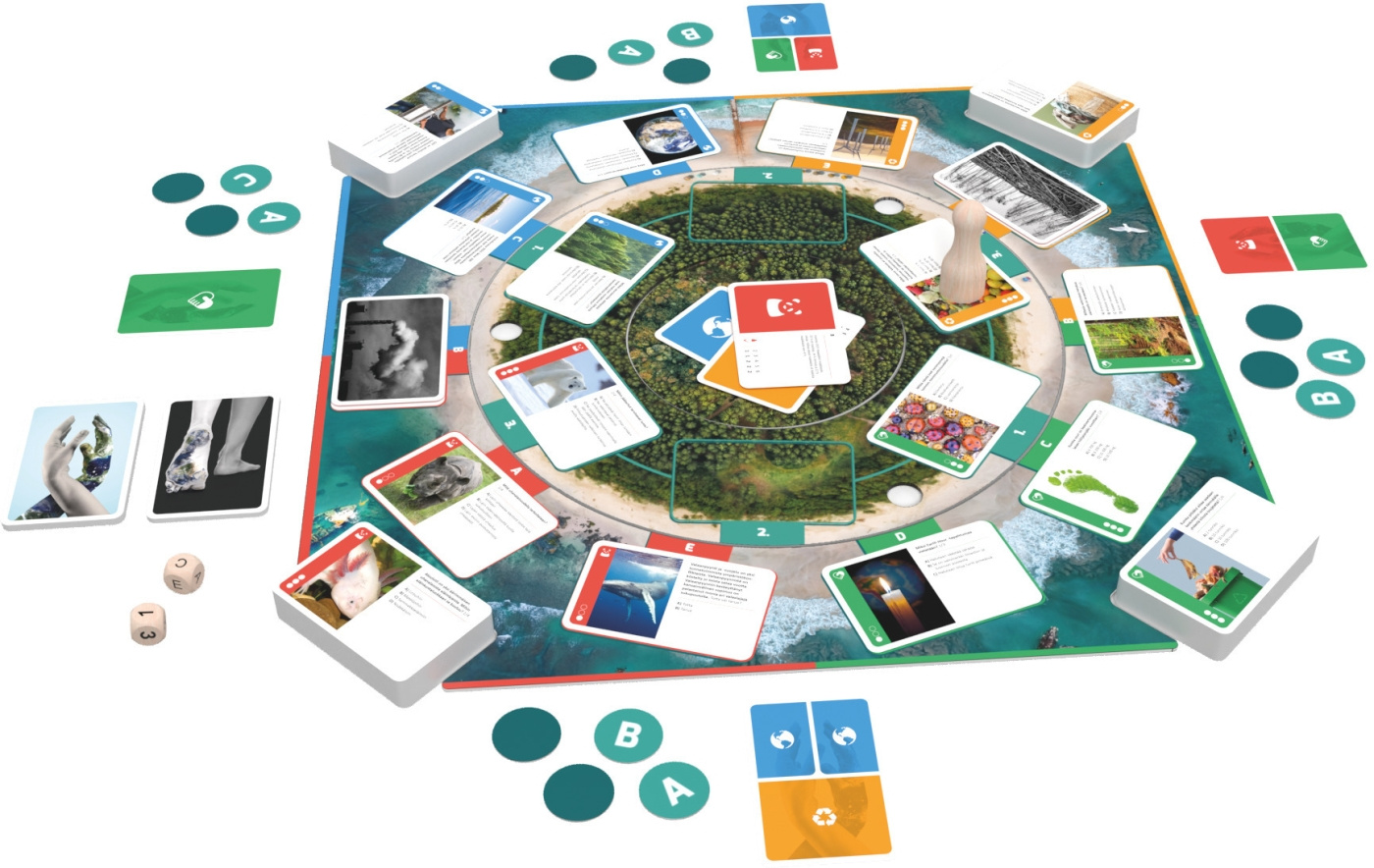 Pelissä on upea pyöritettävä pelilauta ja 300 korttia, jotka kuvittavat kokonaisuuden ympäristömme hyvinvointia koskevilla aiheilla.