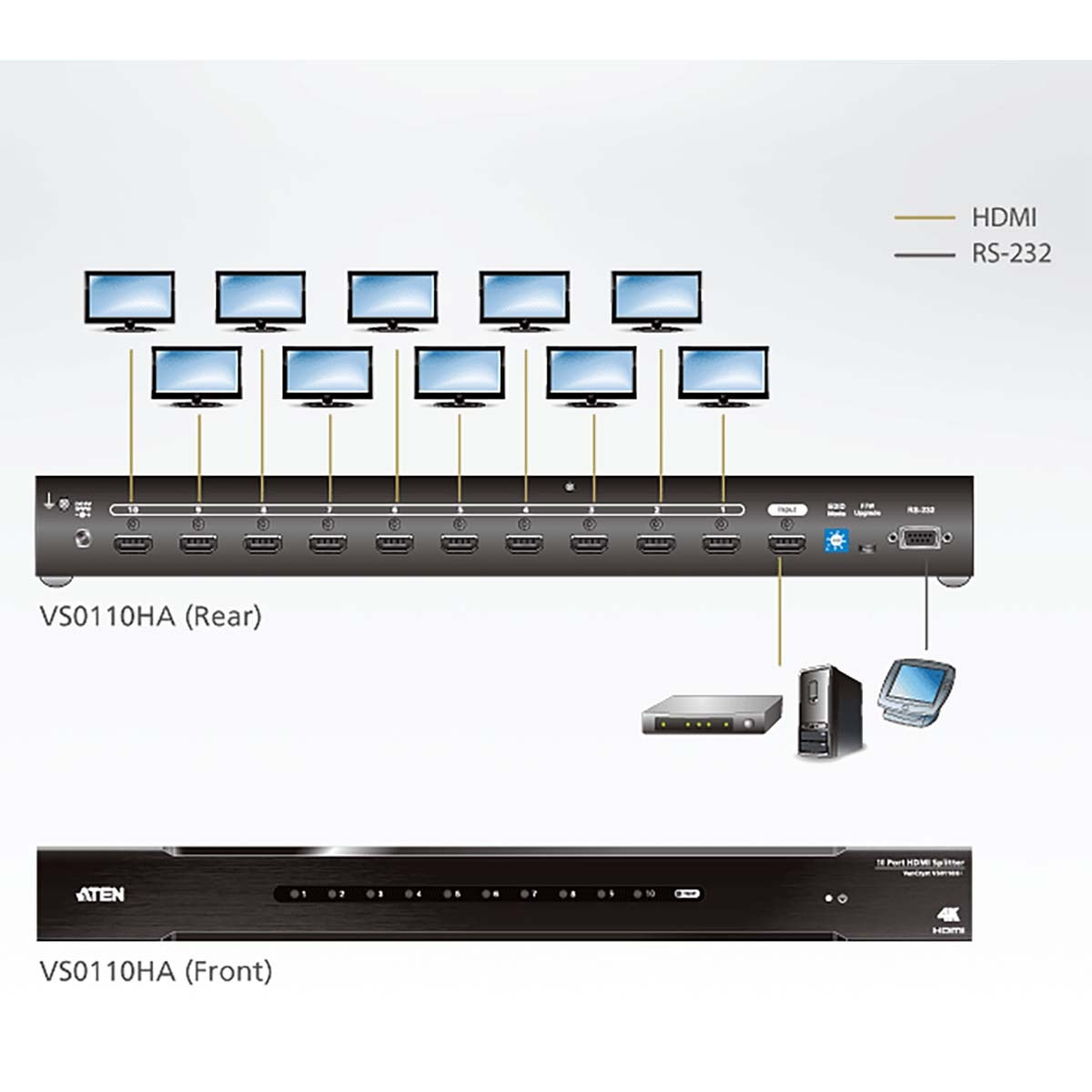 aten 10-Väylä 4K HDMI Jaotin Musta