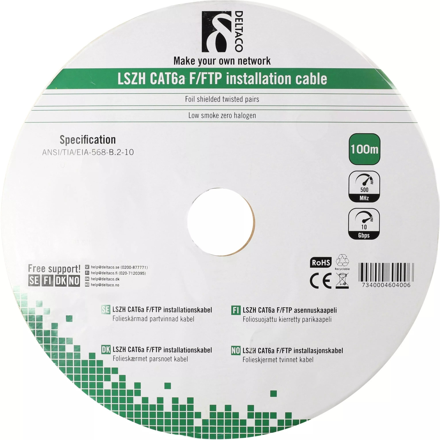 Asennuskaapeli ammattikäyttöön. Neljä erillistä folioeristettyä johtoparia ja foliovaippa. Johtoa ympäröi kestävä taipuisa LSZH-materiaali.