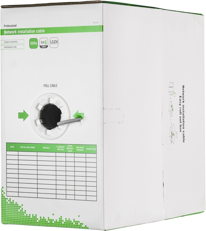 DELTACO U/UTP asennuskaapeli, LSZH, Cat6, 305m laatikko, 250MHz, Delta-sertifioitu, harmaa