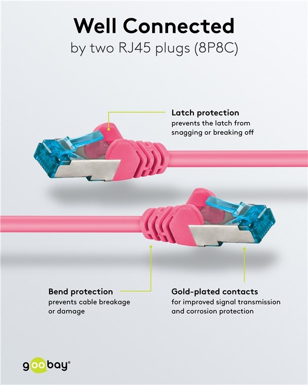 - Böjskydd och stabilt mantel skyddar Ethernet-kabeln optimalt mot kabelbrott.