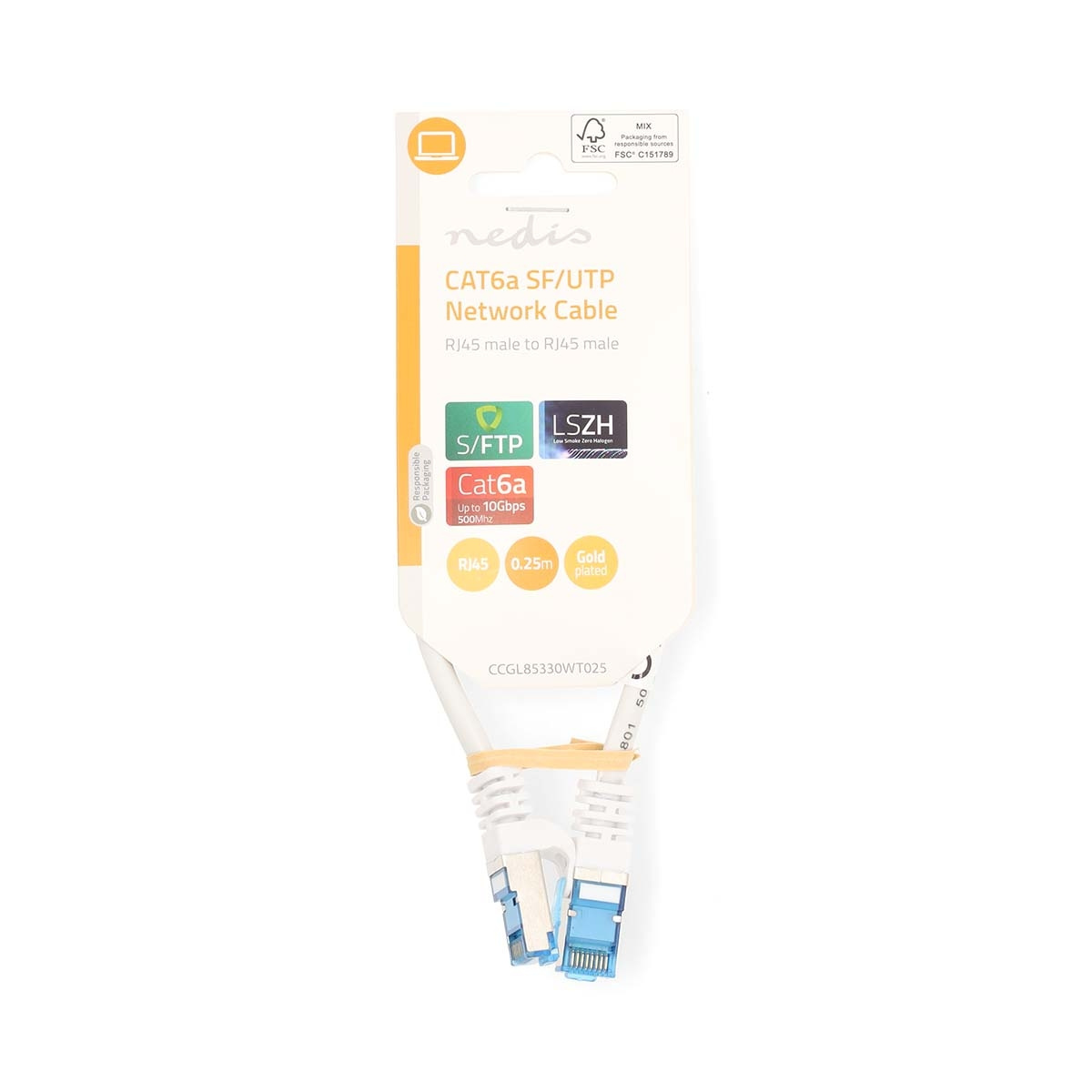 Nedis CAT6a verkkokaapeli | S/FTP | RJ45 uros | RJ45 uros | 0.25 m | Snagless | Pyöreä | LSZH | Valkoinen | Label