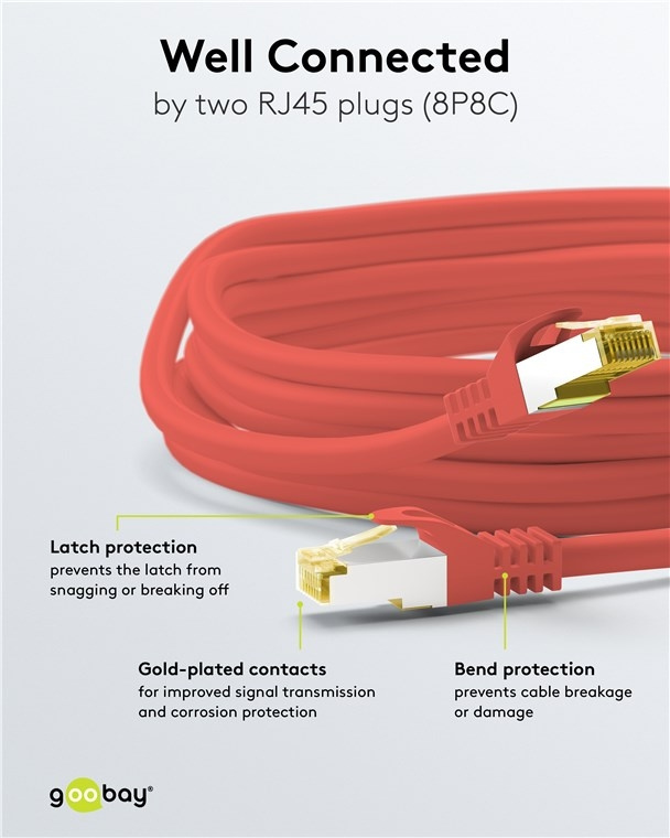 - Böjskydd och stabilt mantel skyddar Ethernet-kabeln optimalt mot kabelbrott.