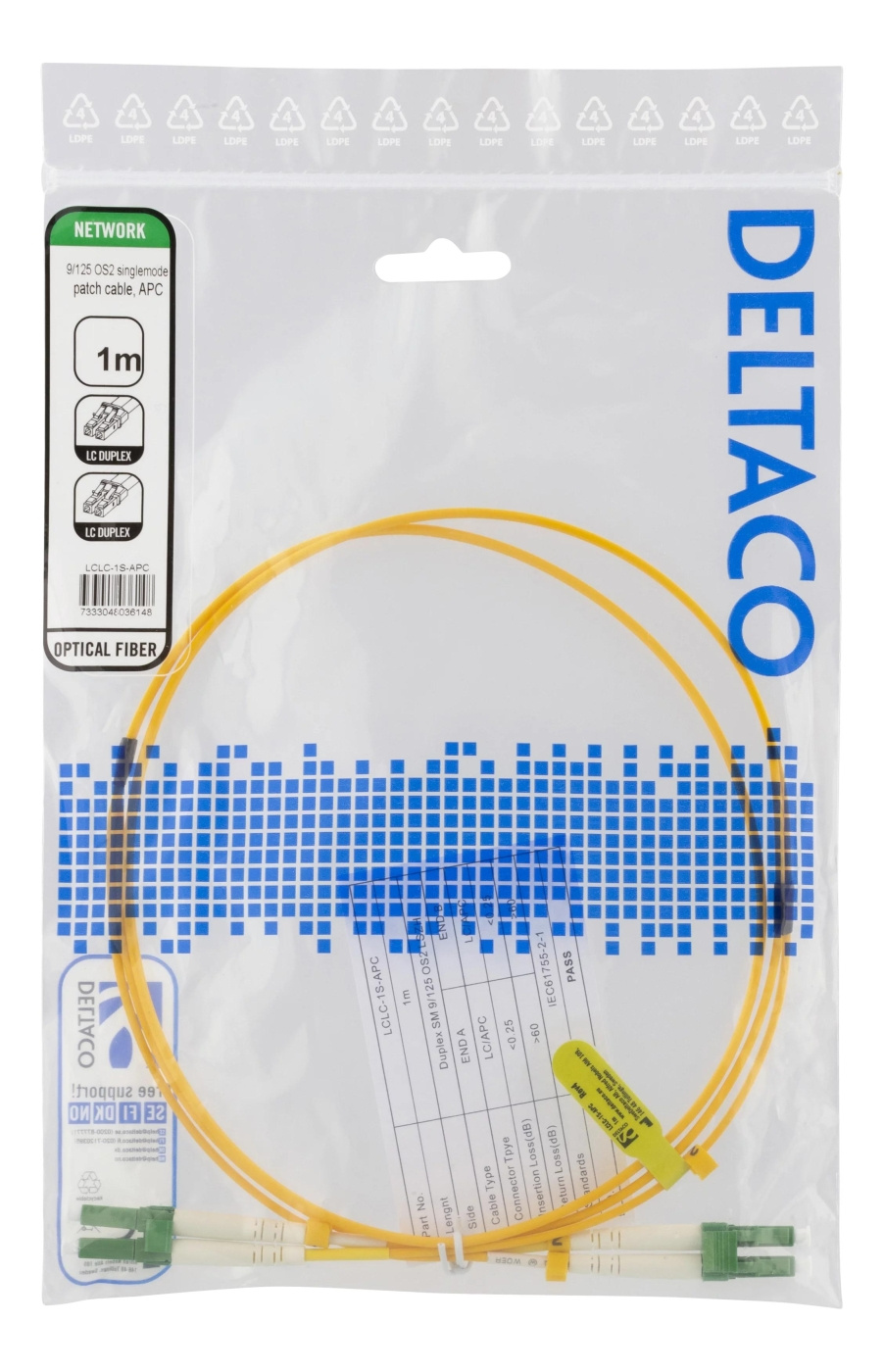 DELTACO OS2-kuitukaapeli, LC – LC, duplex, yksimuotokuitu, APC, 9/125, 1 m