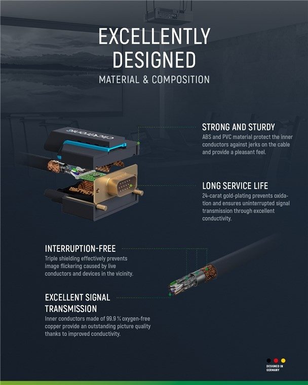 - Rena kopparledare och 2-faldig avskärmning för knivskarp video- och bildkvalitet