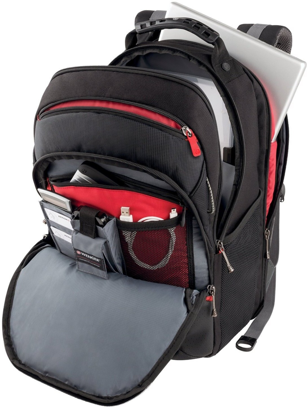 Wenger Legacy -reppu 16" kannettavalle tietokoneelle on kevyt ja mukava kantaa. Sen monipuoliset taskut ja älykäs rakenne takaavat, että työvälineet pysyvät hyvässä järjestyksessä.