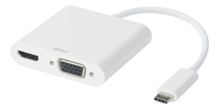 DELTACO USB-C-telakointiasema, HDMI/VGA/ääni/USB-C, 100 W USB-C PD 3.0, valkoinen