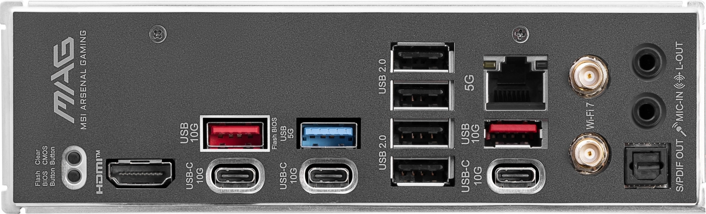 - USB-portit: 1 x USB 20Gbps (1 Type-C), 5 x USB 10Gbps (2 Type-A + 3 Type C), 5 x USB 5Gbps (Type-A), 8 x USB 2.0 Type-A
