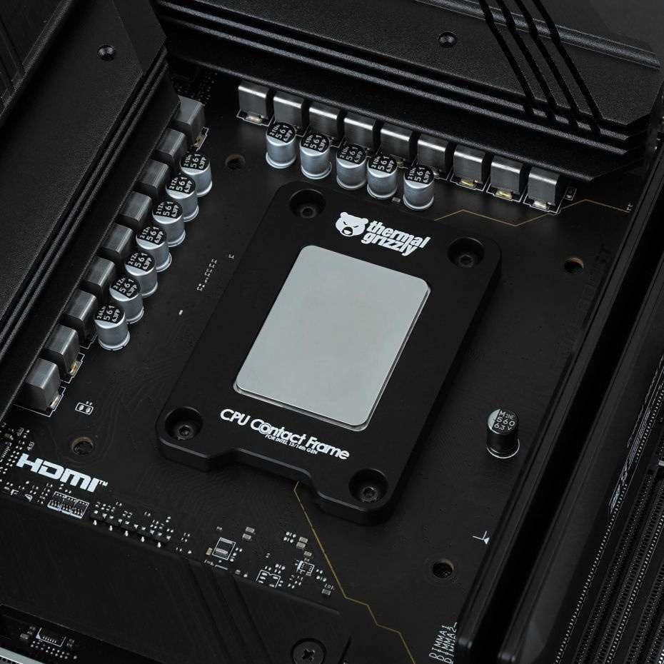 Intel 13th & 14th Gen CPU Contact Frame on Thermal Grizzlyn ja der8auerin yhdessä suunnittelema alumiininen kontaktikehys, joka on tarkoitettu 13. ja 14. sukupolven prosessoreille LGA1700-kannalla.
