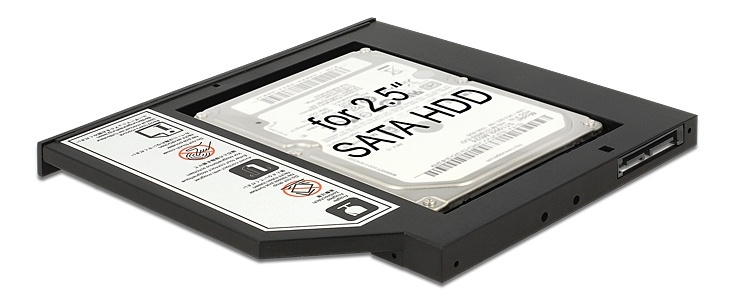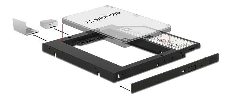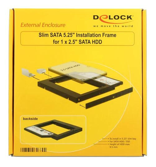 DeLOCK HDD kehys joka mahdollistaa 2,5" SATA levyn asentamisen 5,25", 9,5mm paikkaan, musta