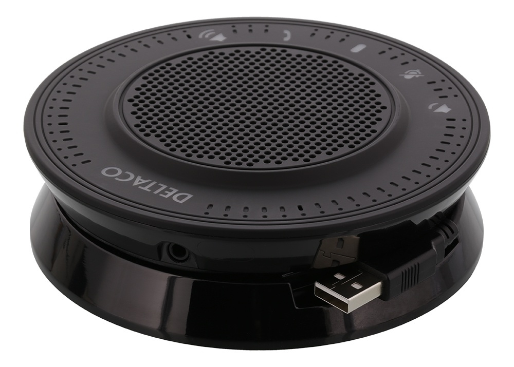 DELTACO OFFICE USB-neuvottelukaiutin, 3,5 mm liitäntä, VoIP, Skype for Business, musta
