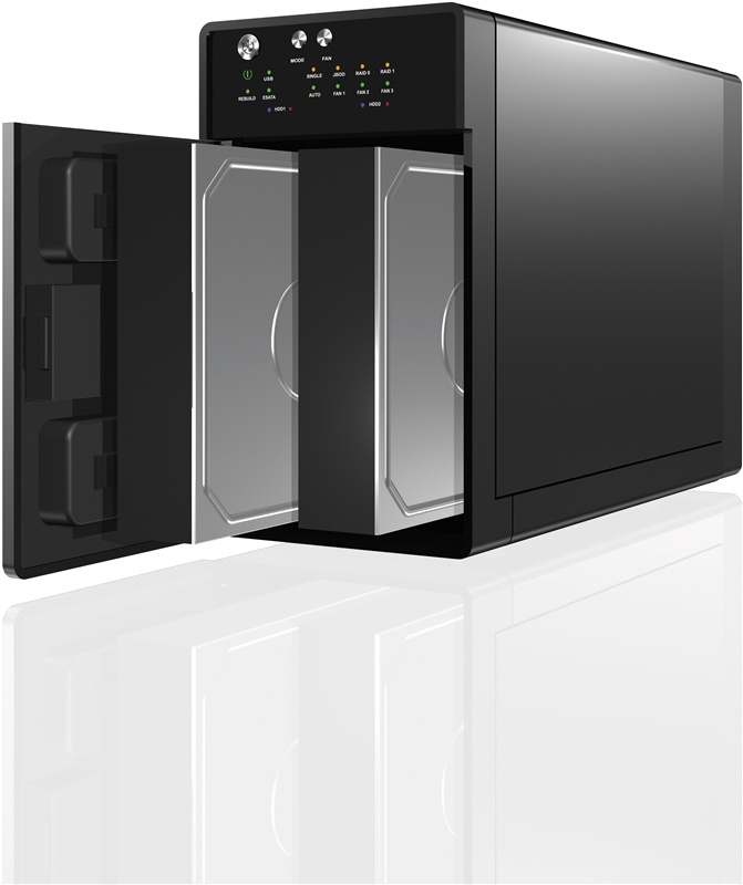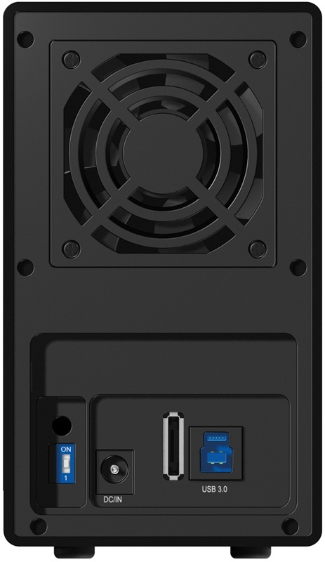 Ulkoinen RAID-kotelo kahdelle 3,5" SATA-kiintolevylle. Takana DIP-kytkin, jolla valitset RAID 0/1:n tai JBODin. Liitetään mukanatulevalla USB 3.0 kaapelilla tai SATA-kaapelilla. Kotelon takana on 60mm tuuletin.