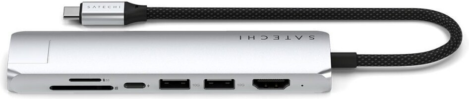 Satechi 7-in-1 USB-C Slim Multiport -adapteri on paras kumppani kannettavalle tietokoneelle tai tabletille. Paranna laitteesi liitettävyyttä tällä tyylikkäällä ja monipuolisella sovittimella, joka on suunniteltu laajentamaan porttejasi ja pitämään yhteytesi yllä missä ikinä oletkin.