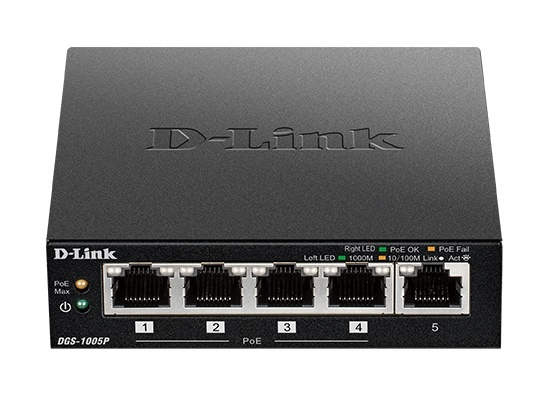 Pöytämallinen kytkin, jossa on tuki PoE+-virransyötölle ja gigabitin yhteydelle. Siihen voi kytkeä esim. tukiaseman, verkkokameran tai IP-puhelimen. DGS-1005P on suunniteltu PK-yrityksiä varten. Laite on kevyt ja hiljainen, joten se soveltuu useimpiin toimistotiloihin.