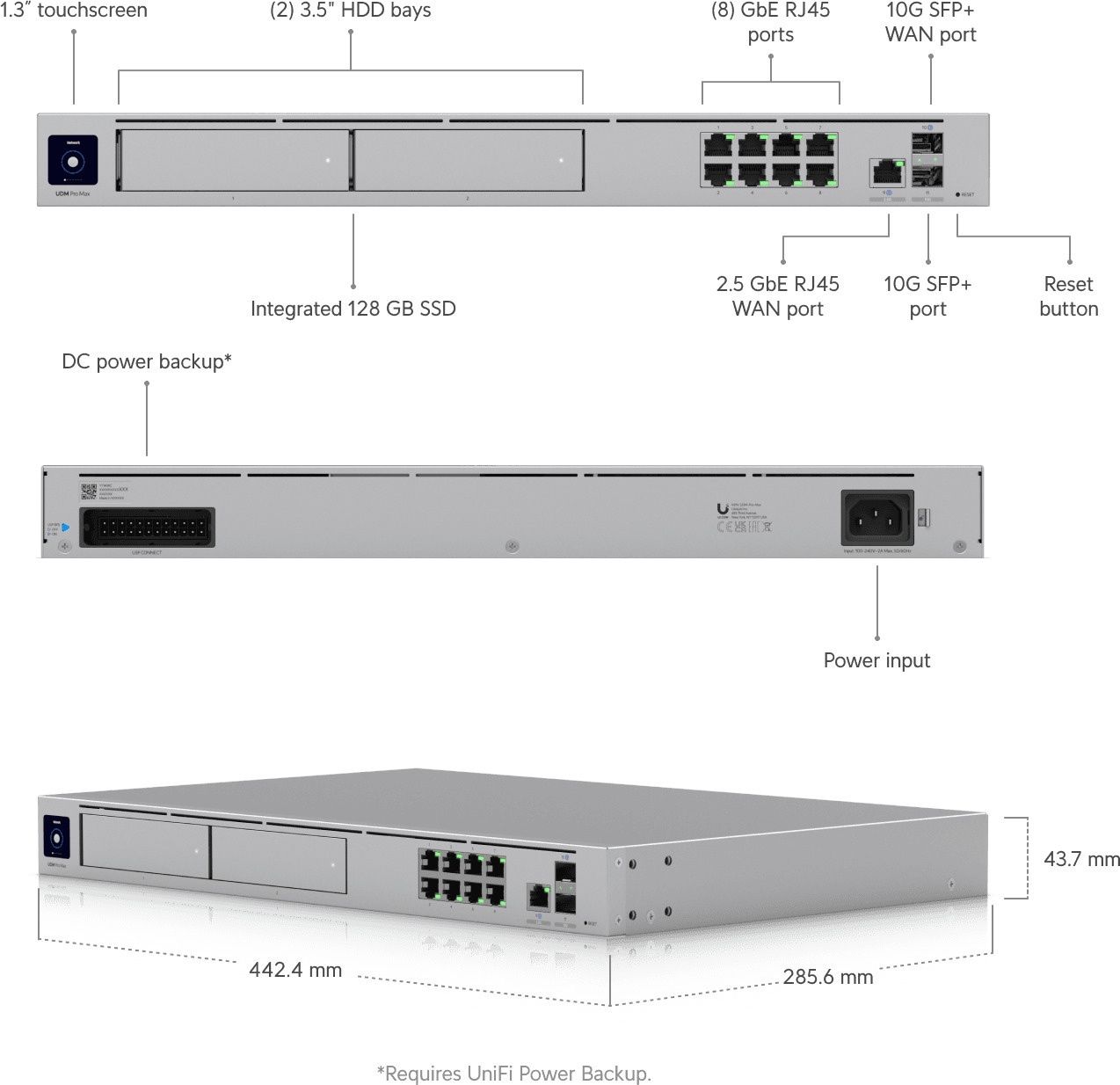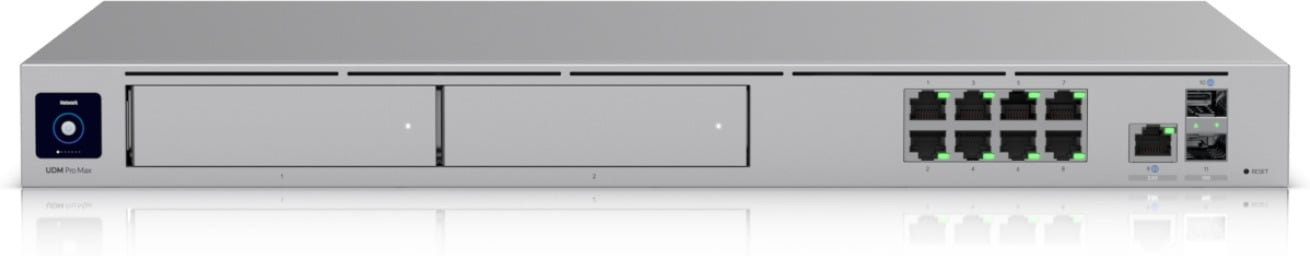 Ubiquiti UniFi Dream Machine Pro Max on All-in-one laite suurille ja keskisuurille yrityksille. Laitteessa yhdistyvät muun muassa palomuuri, nopea Multi-WAN kuormantasauksella (10G SFP+ and 2.5GbE RJ45 portit), UniFi controlleri, 128 Gt integroitu kiintolevy ja kaksi NVR 3.5" kiintolevypaikkaa RAID tuella.