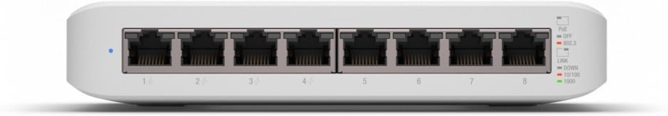 - 8 x 10/100/1000 RJ-45-porttia, joista 4 x PoE+ IEEE 802.3af/at (Pins 1, 2+; 3, 6-)