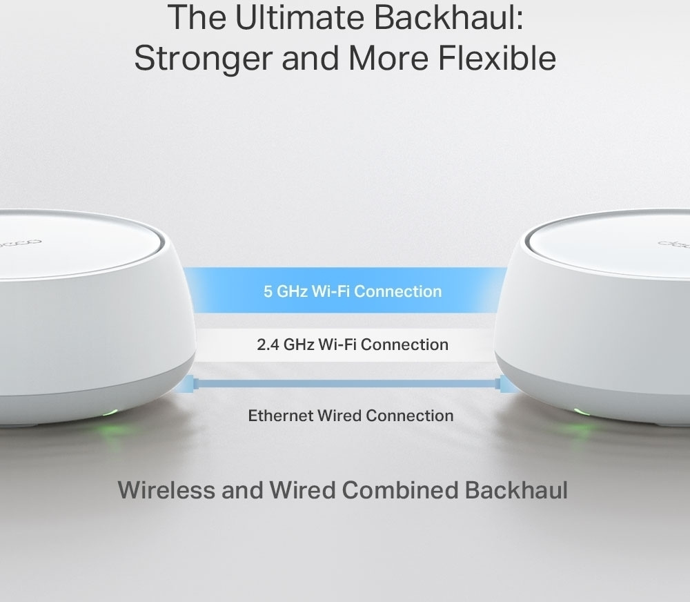 - Kaksi 2.5 Gigabit RJ45 Ethernet porttia jokaisessa tukiasemassa.