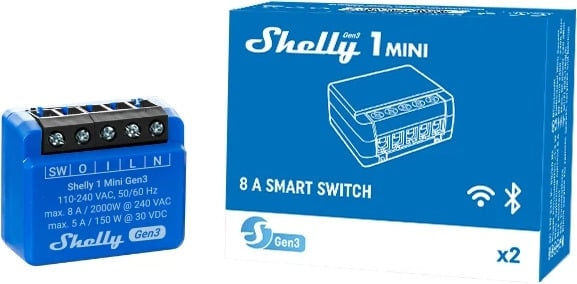 Shelly 1 Mini Gen3 on erittäin pienikokoinen Wi-Fi-ohjattu älykytkin älykkääseen ohjaukseen. Shelly 1 Mini Gen3 ohjaimen avulla ohjaat automaattisesti valoja, autotallin ovea, kastelujärjestelmää tai muita pieniä sähkölaitteita niin kotoa kuin poissa ollessasi. Shelly 1 Mini Gen3 on tarpeeksi pieni mahtuakseen lähes mihin tahansa seinäkytkimeen tai pistorasiaan ja se on asennettavissa myös jälkikäteen.