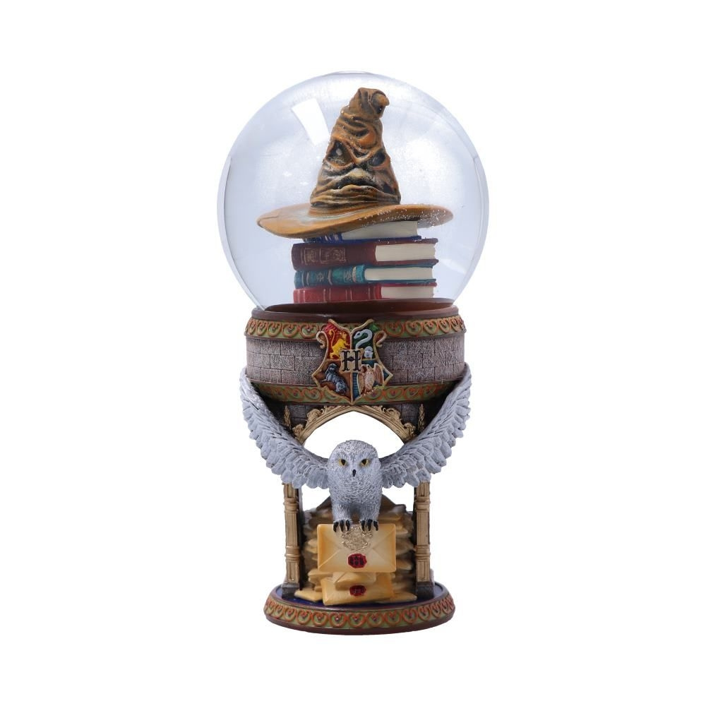Tutustu velhomaailmaan virallisesti lisensoidun Harry Potter Ensimmäinen päivä Tylypahkassa -lumipallon avulla. Kuvassa Hedwig, Harry Potter'n lemmikkilumipöllö, tarttuu Tylypahkan hyväksymiskirjeeseen. Pallon sisällä, loitsukirjojen päällä on kuuluisa lajitteluhattu, joka lajittelee kaikki uudet oppilaat taloihinsa. Tämä esine on valettu hienoimmasta hartsista ja siinä on lasipallo, ja se on taidokkaasti käsin maalattu, ja se sopii täydellisesti niin noidille, velhoille kuin muggeillekin.