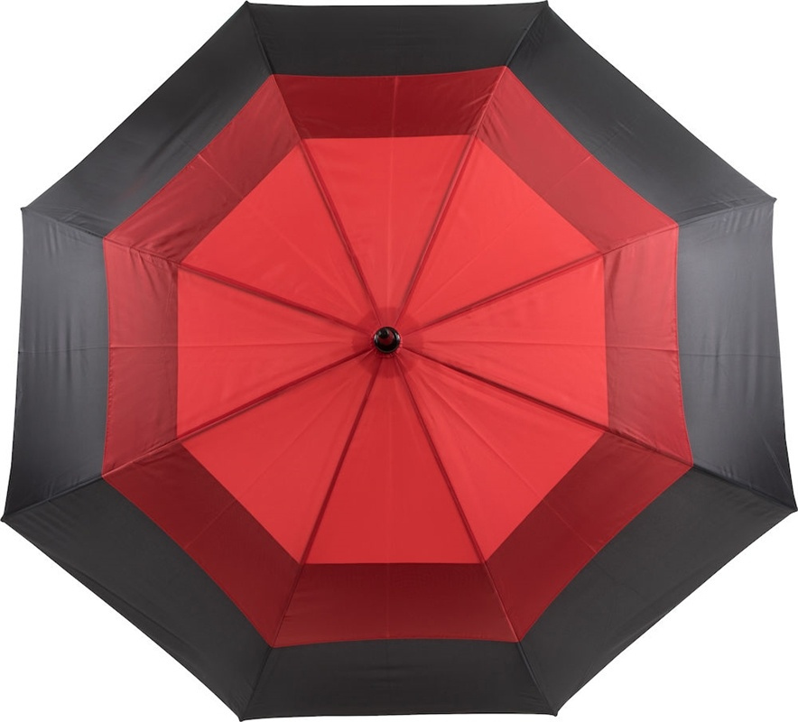Läser man i en ordbok vad paraply är så står det "-Paraply, paraflax eller regnskärm är en anordning som skall skydda från regn och består av en hopfällbar skärm med handtag" Och det är precis det som våra paraplyer är - ett bra skydd mot regn! Detta paraply har rakt handtag och glasfiberskaft. Paraplyet har automatisk uppfällning och duken är gjord av 190t pongee. Den tvåfärgade duken ger ett effektfullt synintryck.